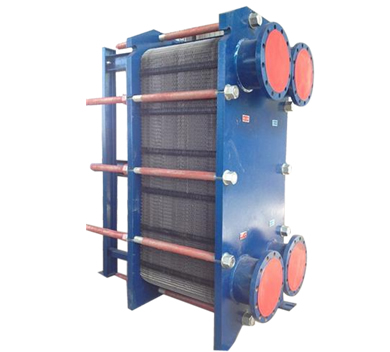 板式換熱器是由一組帶有波紋的金屬板片組成,板上有孔,供傳熱的兩種液體通過。金屬板片安裝在一個(gè)側(cè)面有固定板和活動(dòng)壓緊板的框架內(nèi),并用夾緊螺栓夾緊。板片上裝有密封墊片,將流體通道密封時(shí)并引導(dǎo)流體交替地流至各自的通道內(nèi)。